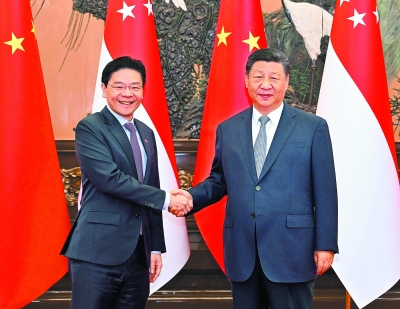 习近平强调,中新要牢牢把握两国友好大方向,始终从战略高度和长远角度看待和发展中新关系,确保航向不偏、动力不减。要筑牢中新友好政治基础,支持彼此核心利益和重大关切,以更高水平政治互信服务两国关系发展。中方欢迎新方继续深度融入中国发展,双方要深入推进共建“一带一路”合作,打造数字经济、绿色发展、人工智能等领域标志性成果,推动重大项目提质升级,续写高质量合作新篇章。要鼓励两国人民常来常往,深化人文交流合作,让中新友好更加深入人心。中方始终认为,和平、发展、合作、共赢的时代潮流不可阻挡,世界不能重拾霸权主义,不能被拖回丛林法则。中方愿同新方一道,站在历史正确一边、站在公平正义一边,共同倡导平等有序的世界多极化、普惠包容的经济全球化,推动世界走向和平、安全、繁荣、进步的光明前景。