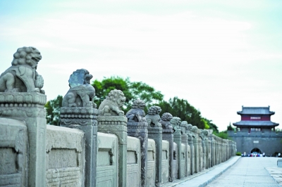 7月7日,夕阳余晖中,卢沟桥石狮静默肃立。