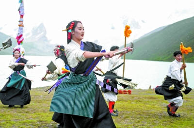 西藏那曲市比如县艺术团的演员在萨普雪山景区为游客表演国家级非物质文化遗产舞蹈“达布阿谐”(7月19日摄)。这是该艺术团今年在景区开展的第6场非遗展演活动。 近年来,西藏那曲市积极推动“非遗+旅游”融合发展,在重大节庆假日和旅游旺季期间,常态化开展非遗进景区展演活动,比如县艺术团全年演出场次中,有30%是在旅游景区进行的。这种创新的文化展演模式为游客提供了沉浸式的非遗体验,也让当地群众共享文化发展成果,有效促进了当地文旅产业深度融合。 新华社记者 晋美多吉/摄