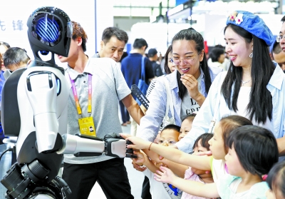 9月6日,在2025世界智能产业博览会现场,生活家居机器人与观众握手。 9月5日至8日,2025世界智能产业博览会在重庆举行。不少AI康复系统、便携式可穿戴设备、养老机器人、适老化设备等前沿成果在智博会上亮相,吸引人们前来参观体验,感受“智慧”养老生活。 新华社记者 陈诚/摄