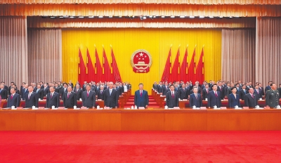 上午10时30分许,在欢快的乐曲声中,习近平等领导同志走上主席台,全场响起长时间的热烈掌声。