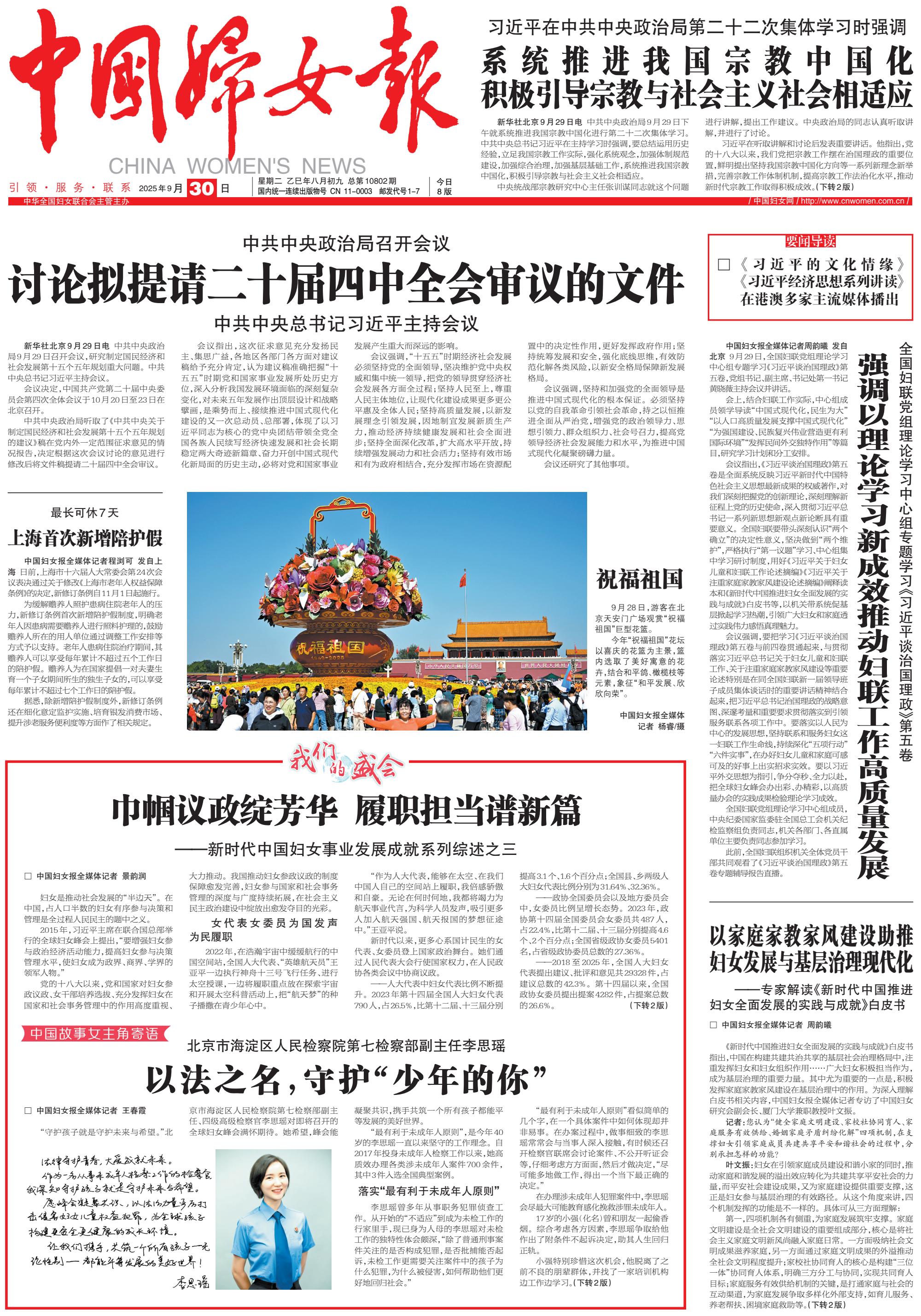 中国妇女报 2025年09月30日