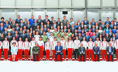 11月9日下午,中共中央总书记、国家主席、中央军委主席习近平在广州亲切接见全国群众体育先进单位、先进个人代表和全国体育系统先进集体、先进个人代表,并同大家合影留念。 新华社记者 申宏/摄