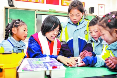 近日,国网杭州供电公司志愿者到白玉县麻绒乡中心小学开展“好好睡觉”公益活动,不仅为孩子们送去床铺冬被冬衣等御寒物资和电脑、打印机等学习硬件设备,还为孩子们开设了用电知识小课堂,通过电力积木的使用传递电力基础知识和安全用电知识等。(吴忱/摄)
