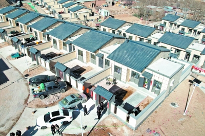 在榆中县马坡乡马莲滩村集中安置点,一户村民在庆祝乔迁(12月1日摄,无人机照片)。 眼下,甘肃省兰州市榆中县山洪灾害灾后重建集中安置点配套设施安装和室内外装饰已基本完成,正在开展分户验收,受灾群众陆续搬进新居,开启新生活。 今年八月初,榆中县遭遇连续强降雨,引发山洪灾害,导致部分房屋、道路等基础设施严重受损。按照灾后重建计划,当地快速推进6个灾后重建集中安置点建设,共安置受灾群众325户。新华社记者 陈斌/摄