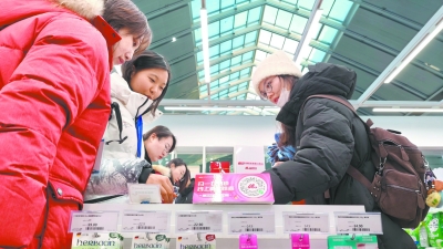 12月21日,消费者在银川火车站内的中欧班列进口商品(保税)店内选购商品。 银川火车站中欧班列进口商品(保税)店依托中欧班列回程车的物流运输优势,将中欧班列沿线国家和地区的优质特色商品进口到国内,采用一般贸易和跨境保税相互融合的交易方式,让广大旅客享受到“一带一路”倡议的普惠福利。 新华社记者 邢广利/摄