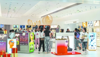 12月25日,顾客在海南三亚国际免税城购物。 海南自由贸易港封关运作首周,离岛免税购物保持增长态势,消费热潮持续升温。据海口海关统计,封关运作首周(12月18日—24日),海口海关共监管离岛免税购物金额11亿元,同比增长54.9%。 新华社发