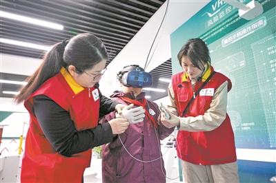 近日,在江苏宿迁电力科普教育基地,国网宿迁供电公司青年志愿者通过现场实操,给来自宿迁市张家港实验小学的40余名小学生上了一堂生动的电力安全科普课,为孩子们即将到来的寒假筑牢安全网。图为江苏省五一巾帼标兵、国网宿迁供电公司“苏妍”现代智慧配电网突击队队长毛王清和队友协助同学们亲身体验高坠和触电等项目。