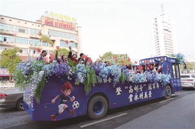 自去年年底夺得“湘超”冠军后,千年古城永州的足球热情持续高涨,城区街头巷尾的立柱广告牌、户外电子屏播放着来自各地网友的祝贺。永州市民积极回应,自发设立补给站,用脐橙、柚子等特产迎接八方来客。永州以鲜活的方式,将体育荣耀融入城市脉搏,让市民和游客们共庆欢乐,感受永州的体育高光。 新华社记者 陈振海/摄