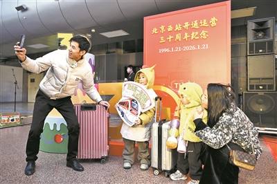 1月21日,北京西站迎来开通运营三十周年。自1996年开通以来,北京西站累计服务旅客超19.6亿人次,从“两线一站”发展为“十一线八站”,年发送旅客从826万增至6539万,通达32个省级行政区、211个地级市。这座“京西门户”当日举办职工自编文艺演出、互动问答等活动吸引旅客驻足。中国妇女报全媒体见习记者 史羽航/摄
