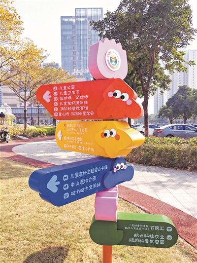 行走在广东省中山市港口镇港口大道、世纪东路一带,可以看到路边安装了多组大型玩具以及各种儿童友好的标志,在生动展现港口镇作为重要的游戏游乐设施产地的同时,也提醒路人正身处一个颇具特色的儿童友好街区。