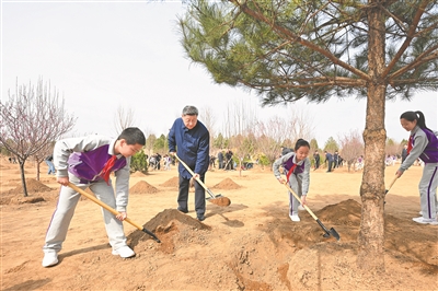 在京中共中央政治局委员、中央书记处书记、国务委员等参加植树活动。