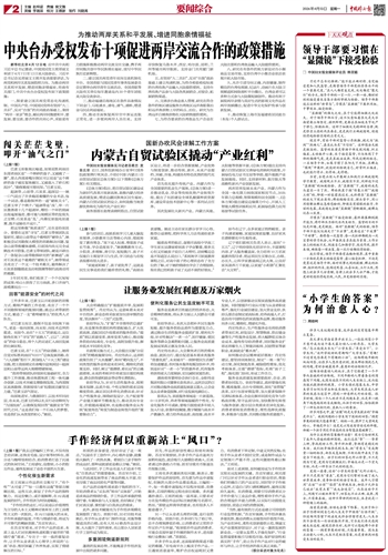 中央台办受权发布十项促进两岸交流合作的政策措施