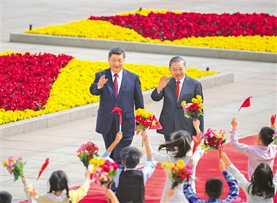 双方要同心协力,携手同行现代化道路。要加快发展战略对接,优先推进基础设施互联互通。要加强人工智能、半导体、物联网等新兴领域合作。中方欢迎更多越南优质产品进入中国市场。双方要继续加强旅游、文化、媒体、教育、卫生、体育等友好交流合作,促进两国人民相知相亲。我愿同你一道宣布启动2026-2027年“中越旅游合作年”。