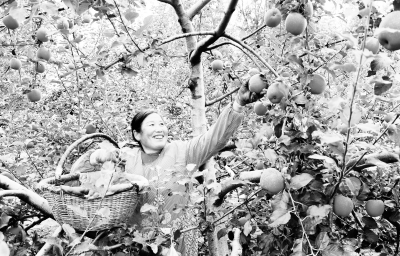 10月8日,在甘肃省平凉市静宁县威戎镇杨湾村,果农在采摘苹果。
