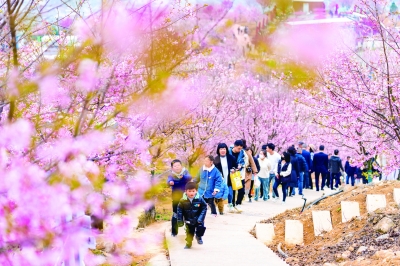 2月19日,游客在浙江省瑞安市桐浦镇桐浦凤凰樱花谷游玩赏花。 早春时节,随着气温回暖,我国南方多地鲜花开放。人们走出家门,踏青赏花,乐享春日时光。 新华社发(孙凛/摄)