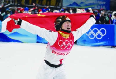 中国女运动员徐梦桃获得2022年北京冬奥会自由式滑雪女子空中技巧赛金牌。
