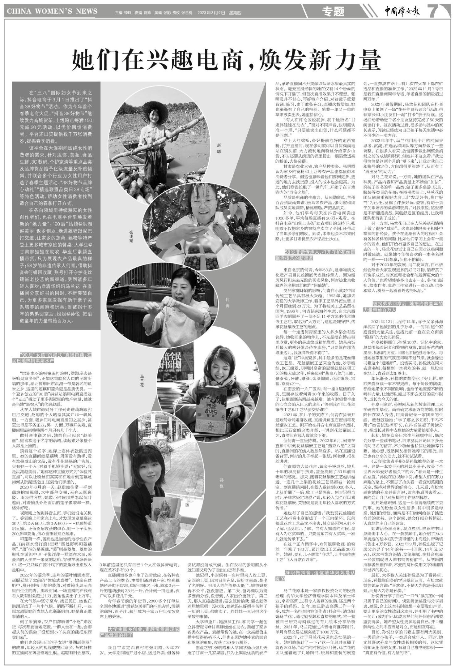 在各自领域里持续耕耘的女性创作者们,也在电商平台里焕发着新的“她力量”:“90后”姑娘@洪湖赵美丽 返乡创业,走进藕塘跟泥巴打交道,让家乡的莲藕、藕粉等特产登上更多城市家庭的餐桌;大学生@甘肃胖娃娃在助农 毕业后素颜直播带货,只为展现农产品最真的样子;58岁的非遗传承人何青,借助抖音@何姐聊收藏 账号打开守护花丝镶嵌老技艺的新渠道,受到诸多年轻人喜欢;@清华妈妈马兰花 在直播间分享好书的同时,不断突破自己,为更多家庭发掘有助于亲子关系培养的桌游和玩具;当被拐十多年的弟弟回家后,姐姐@孙悦 把治愈童年的力量带给百万人。