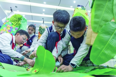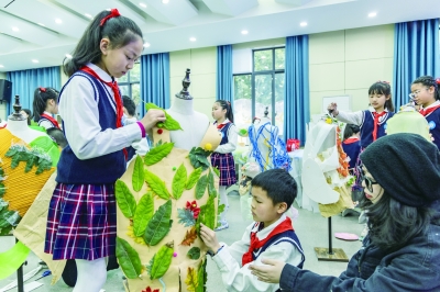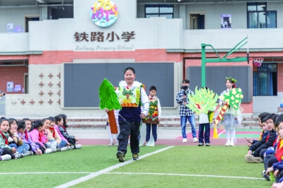 为迎接3月12日“植树节”,重庆市九龙坡区铁路小学组织师生举办“我为世界添片绿”植树节环保系列服装设计展示活动。40余名学生在学校老师和美术义工的指导下,收集身边各种可以利用的废弃物,发挥想象力,制作成环保服装,倡导植绿、爱绿、护绿的生态理念和绿色生活方式。新华社记者 黄伟/摄