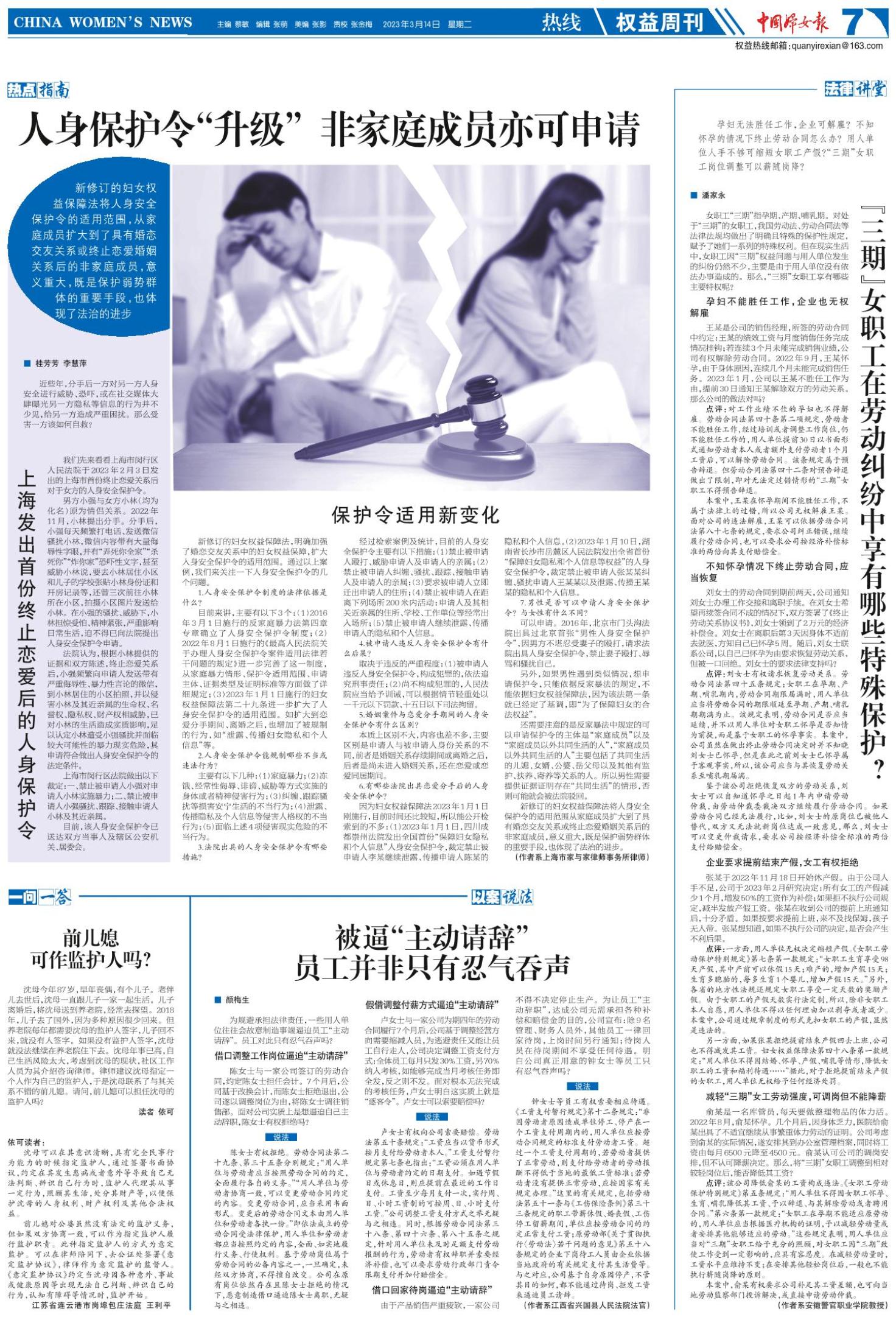 《中国妇女报》(电子版)的一切内容(包括但不限于文字、图片、PDF、图表、标志、标识、商标、版面设计、专栏目录与名称、内容分类标准以及为读者提供的任何信息)仅供中国妇女报读者阅读、学习研究使用,未经中国妇女报及/或相关权利人书面授权,任何单位及个人不得将《中国妇女报》(电子版)所登载、发布的内容用于商业性目的,包括但不限于转载、复制、发行、制作光盘、数据库、触摸展示等行为方式,或将之在非本站所属的服务器上作镜像。否则,中国妇女报将采取包括但不限于网上公示、向有关部门举报、诉讼等一切合法手段,追究侵权者的法律责任。