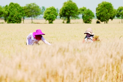 5月23日,农民在泗洪县龙集镇勒东村麦田里除杂。 江苏省宿迁市泗洪县是全国商品粮生产基地县。全县140万亩小麦经过科学管理,目前颗粒饱满,丰收在望。连日来,广大农民深入田间进行麦田除杂,准备收割。 新华社发(许昌亮/摄)
