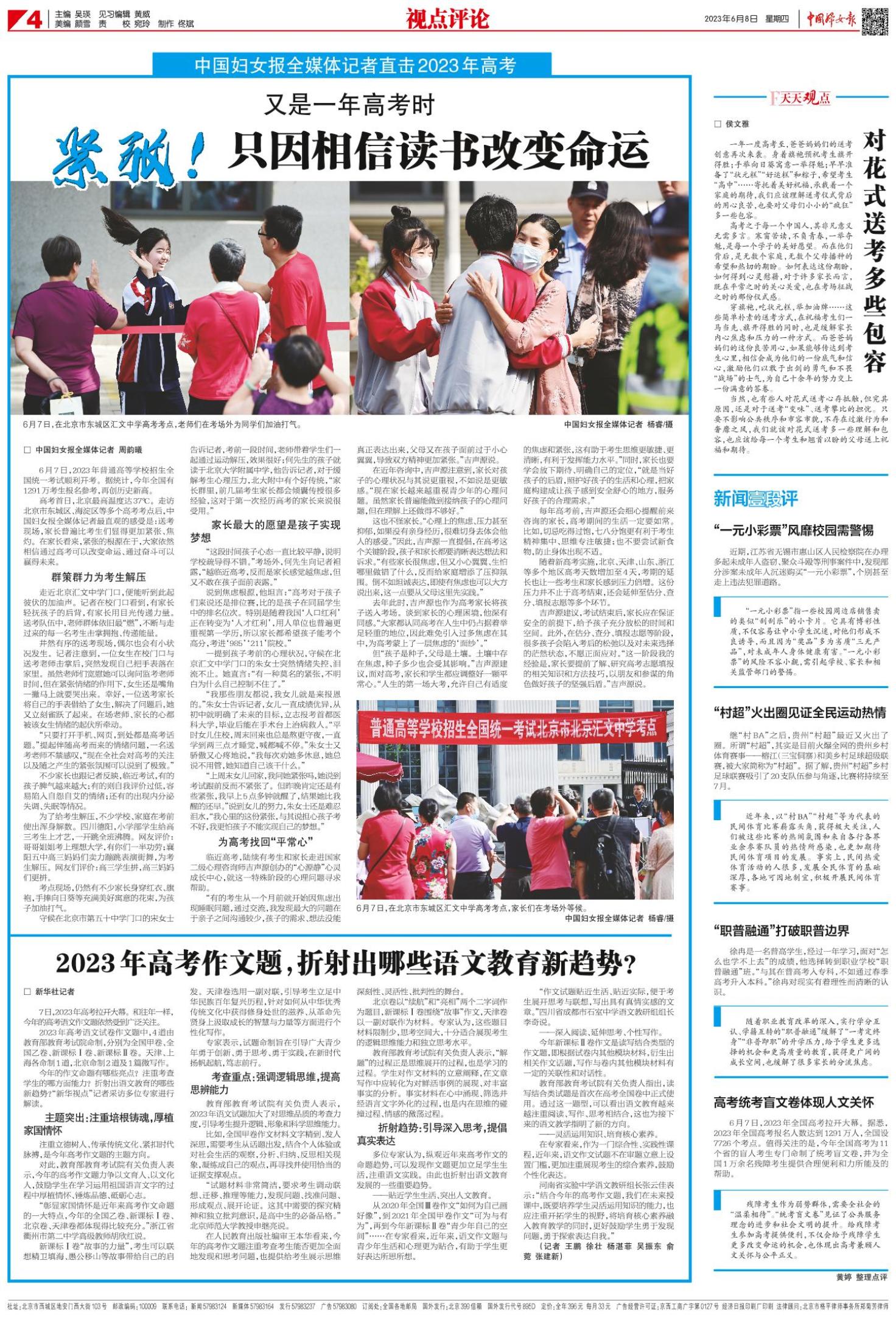 《中国妇女报》(电子版)的一切内容(包括但不限于文字、图片、PDF、图表、标志、标识、商标、版面设计、专栏目录与名称、内容分类标准以及为读者提供的任何信息)仅供中国妇女报读者阅读、学习研究使用,未经中国妇女报及/或相关权利人书面授权,任何单位及个人不得将《中国妇女报》(电子版)所登载、发布的内容用于商业性目的,包括但不限于转载、复制、发行、制作光盘、数据库、触摸展示等行为方式,或将之在非本站所属的服务器上作镜像。否则,中国妇女报将采取包括但不限于网上公示、向有关部门举报、诉讼等一切合法手段,追究侵权者的法律责任。