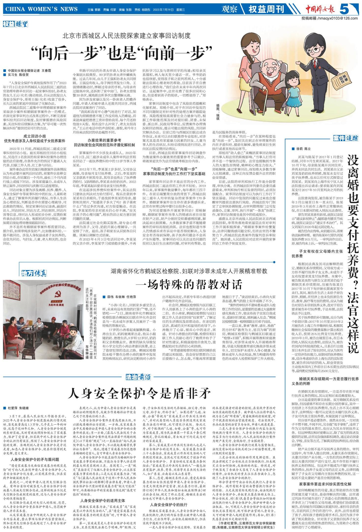 《中国妇女报》(电子版)的一切内容(包括但不限于文字、图片、PDF、图表、标志、标识、商标、版面设计、专栏目录与名称、内容分类标准以及为读者提供的任何信息)仅供中国妇女报读者阅读、学习研究使用,未经中国妇女报及/或相关权利人书面授权,任何单位及个人不得将《中国妇女报》(电子版)所登载、发布的内容用于商业性目的,包括但不限于转载、复制、发行、制作光盘、数据库、触摸展示等行为方式,或将之在非本站所属的服务器上作镜像。否则,中国妇女报将采取包括但不限于网上公示、向有关部门举报、诉讼等一切合法手段,追究侵权者的法律责任。