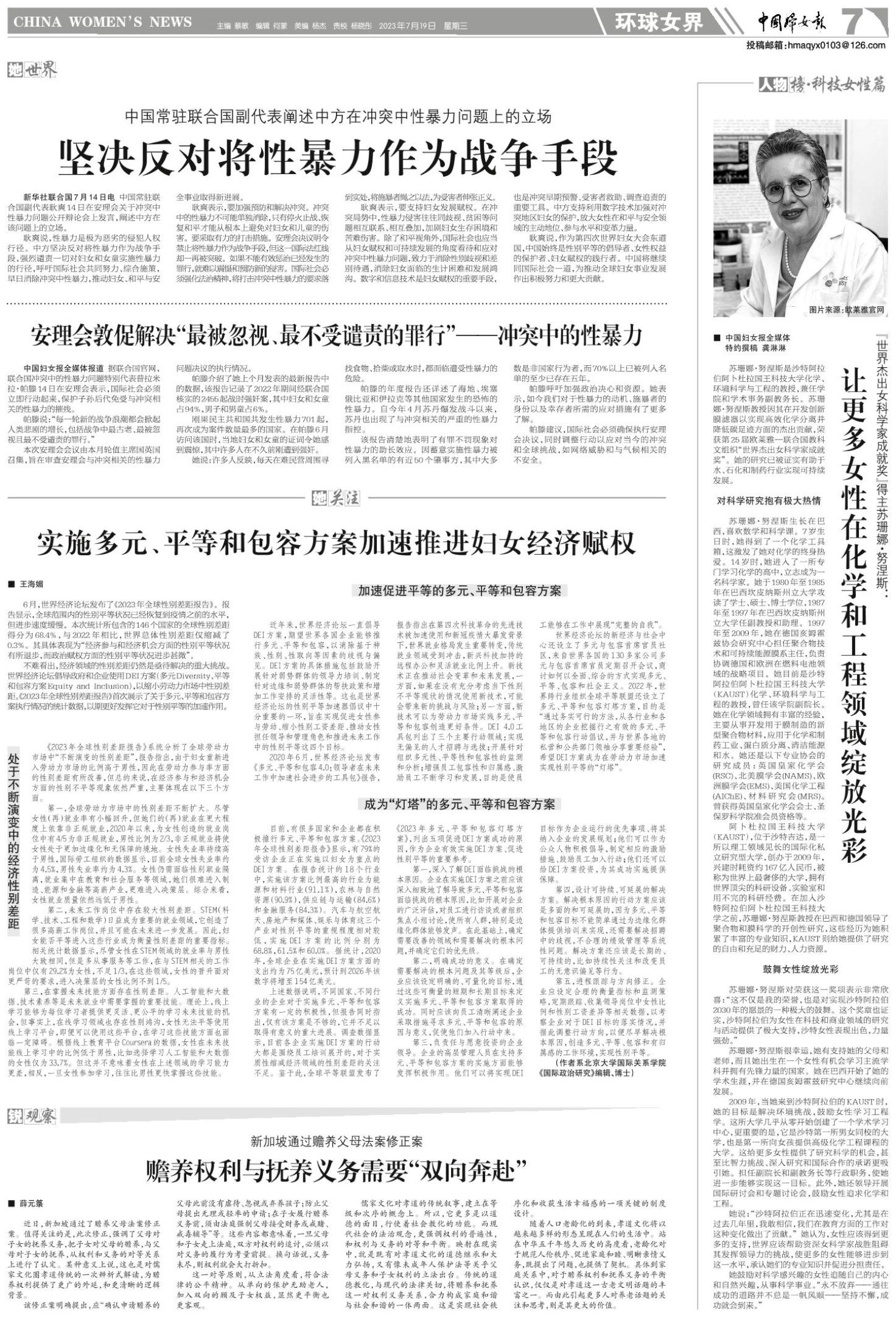 《中国妇女报》(电子版)的一切内容(包括但不限于文字、图片、PDF、图表、标志、标识、商标、版面设计、专栏目录与名称、内容分类标准以及为读者提供的任何信息)仅供中国妇女报读者阅读、学习研究使用,未经中国妇女报及/或相关权利人书面授权,任何单位及个人不得将《中国妇女报》(电子版)所登载、发布的内容用于商业性目的,包括但不限于转载、复制、发行、制作光盘、数据库、触摸展示等行为方式,或将之在非本站所属的服务器上作镜像。否则,中国妇女报将采取包括但不限于网上公示、向有关部门举报、诉讼等一切合法手段,追究侵权者的法律责任。