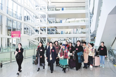 ▲10月21日下午,参加中国妇女十三大的新疆代表团抵达北京大兴国际机场,图为代表们走出航站楼。    中国妇女报全媒体记者 樊文军/摄
