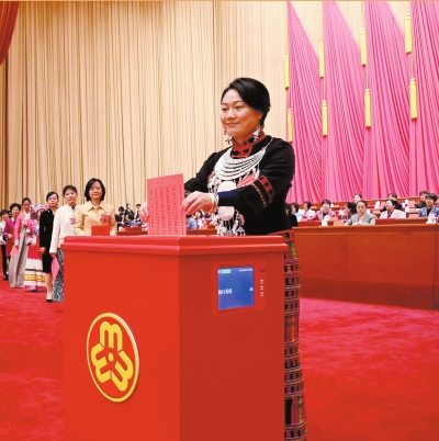 ▲10月25日,中国妇女第十三次全国代表大会在北京人民大会堂举行选举大会。选举中华全国妇女联合会第十三届执行委员会委员。