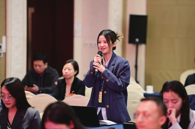 ▲10月23日,中国妇女报全媒体记者在中国妇女十三大代表媒体见面会上提问。