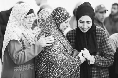 12月3日,在加沙地带代尔拜拉赫的一家医院,巴勒斯坦人哀悼在以军袭击中遇难的亲属。