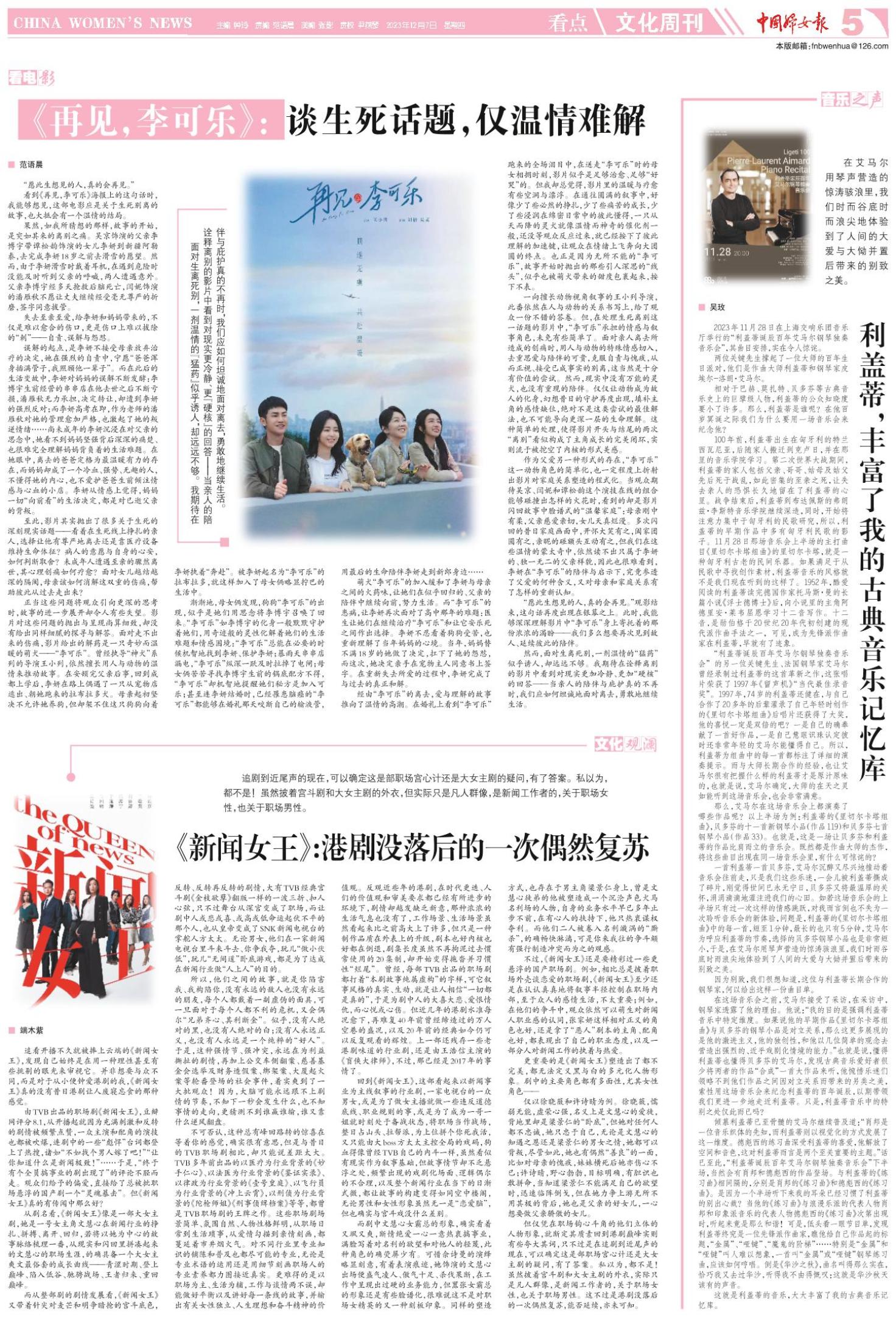 然而,面对生离死别,一剂温情的“猛药”似乎诱人,却远远不够。我期待在诠释离别的影片中看到对现实更加冷静、更加“硬核”的回答——当亲人的陪伴与庇护真的不再时,我们应如何坦诚地面对离去,勇敢地继续生活。