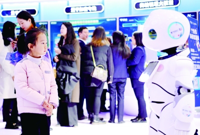 12月6日,一名小女孩在2023世界5G大会展厅现场与机器人互动。 当日,2023世界5G大会在河南省郑州市开幕,大会以“5G变革 共绘未来”为主题,以持续推动5G不断演进创新为目标,推动构建融合共创、协同创新、开放共赢的全球科技合作体系和产业生态。 新华社记者 郝源/摄