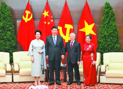 习近平说,中共二十大胜利召开后,我第一时间邀请阮富仲总书记访华,此次我又以对越南国事访问作为今年中国外交圆满收官,具有重要意义。中越两党领导人亲自擘画两党两国关系发展,是我们的良好传统。此访期间,我们共同宣布构建具有战略意义的命运共同体,使中越关系站在新的历史起点上,必将推动中越关系迈上新台阶。