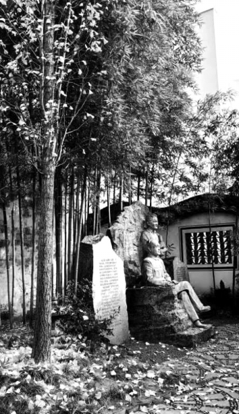 在他们父子的故居,一间一间屋子地览读那些历史的记忆,从中读到的,是他们在那个时代的一腔热血、奋斗激情,以及深深的爱国情怀。拾级而上,在二楼的一间小屋内停下,从开着的小窗,向外望去,屋前的院子里两父子的雕像后瘦而绿的竹直冲天际,一枚银杏叶从不远处飘了过来,是也听到游人的怀念与感慨了吗?还是心灵也受到了涤荡?