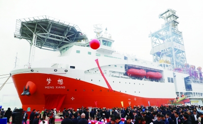 当日,我国自主设计建造的首艘大洋钻探船正式命名为“梦想”号,并在广州南沙首次试航。