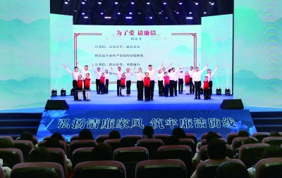 活动中,党员干部家庭展演廉政节目,讲述家风故事。音诗画《中华清廉好家风》,让赓续中华千年清廉文脉跫音回响。创新曲艺《新说唱“廉”谱》,把廉洁家庭涵育新篇大声传唱。空间情境《清风接力,棒!》,鼓舞着无数家庭接力弘扬廉洁新风尚。当天活动上,还为家庭助廉立德活动文化比赛获奖家庭、家庭助廉立德活动表现突出单位颁奖,同时揭晓了2023年重庆十大最美家庭,并向全市发出倡议书《为了爱,请廉洁》。