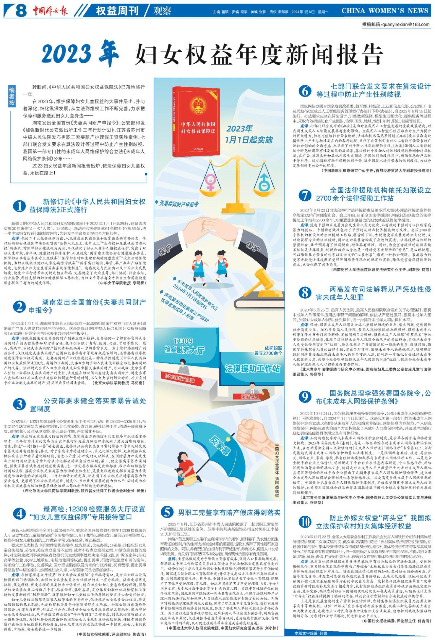 《中国妇女报》(电子版)的一切内容(包括但不限于文字、图片、PDF、图表、标志、标识、商标、版面设计、专栏目录与名称、内容分类标准以及为读者提供的任何信息)仅供中国妇女报读者阅读、学习研究使用,未经中国妇女报及/或相关权利人书面授权,任何单位及个人不得将《中国妇女报》(电子版)所登载、发布的内容用于商业性目的,包括但不限于转载、复制、发行、制作光盘、数据库、触摸展示等行为方式,或将之在非本站所属的服务器上作镜像。否则,中国妇女报将采取包括但不限于网上公示、向有关部门举报、诉讼等一切合法手段,追究侵权者的法律责任。