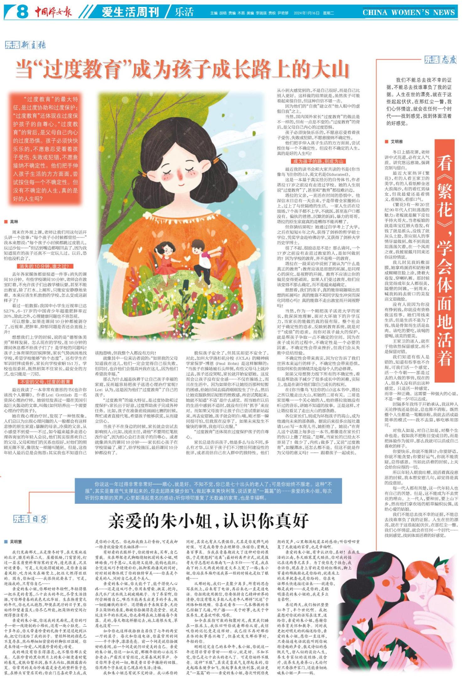 《中国妇女报》(电子版)的一切内容(包括但不限于文字、图片、PDF、图表、标志、标识、商标、版面设计、专栏目录与名称、内容分类标准以及为读者提供的任何信息)仅供中国妇女报读者阅读、学习研究使用,未经中国妇女报及/或相关权利人书面授权,任何单位及个人不得将《中国妇女报》(电子版)所登载、发布的内容用于商业性目的,包括但不限于转载、复制、发行、制作光盘、数据库、触摸展示等行为方式,或将之在非本站所属的服务器上作镜像。否则,中国妇女报将采取包括但不限于网上公示、向有关部门举报、诉讼等一切合法手段,追究侵权者的法律责任。