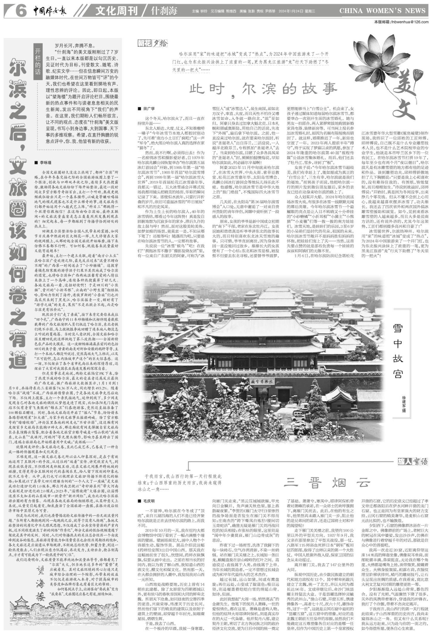 冰雪暖世界,尔滨热神州。哈尔滨用“家”的味道把“冰城”变成了“热点”,为2024年中国旅游来了一个开门红,也为东北振兴涂抹上了浓重的一笔,更为黑龙江旅游“龙”行天下助燃了“冬天里的一把火”!