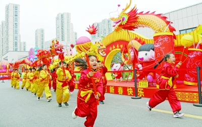 2月20日,浙江省台州市仙居县迎晖幼儿园的孩子们在参加舞龙闹春迎元宵表演。元宵佳节临近,人们进行传统舞龙表演,热热闹闹迎元宵。新华社发(王华斌/摄)