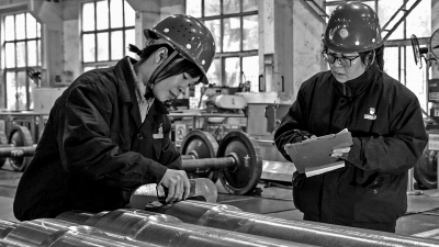 柳州车辆段车轮车间女工在测量轮座部位尺寸数据。    春运期间,中国铁路南宁局集团有限公司工务、电务、机务等部门的女工们,顶着寒潮,加强关键部件、设施检查保养,提高设备运行质量,全力保障春运安全畅通。    新华社记者 张爱林/摄