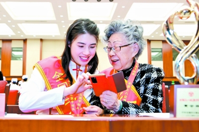 互加微信、拍照留念、关切鼓励……当90岁的黄会林与“90后”张雨霏第一次邂逅,虽然人生轨迹不同,虽然从事不同领域,但巾帼奋进的共同精神让她们早已跨越了年龄的差距,有着说不完的话题: