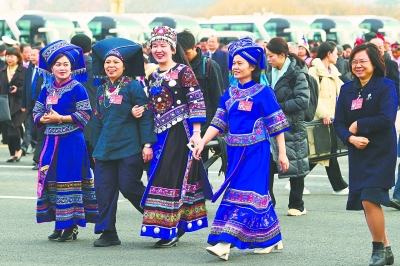 3月4日,十四届全国人大二次会议举行预备会议,选举大会主席团和秘书长,表决大会议程草案。图为与会代表步入人民大会堂。中国妇女报全媒体记者  杨睿/摄