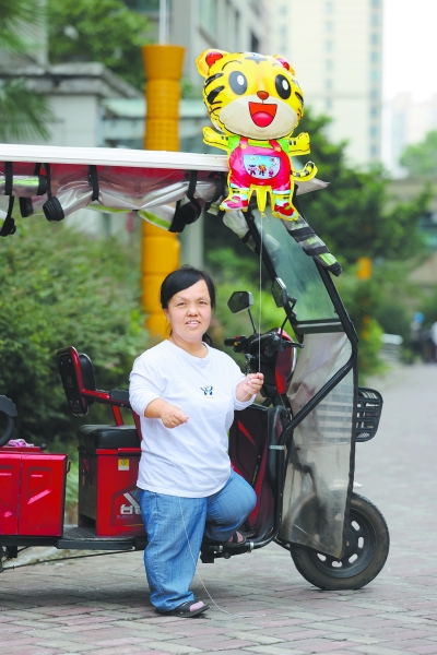 在安徽合肥街头的流动摊点中,身高只有1.1米的彭霞,是特别的存在。十几年来,每天,她娇小的身躯骑着拴满气球的电动车穿行在街市,手拿五彩斑斓的气球在人流密集处售卖,璀璨的笑容总能感染很多人。