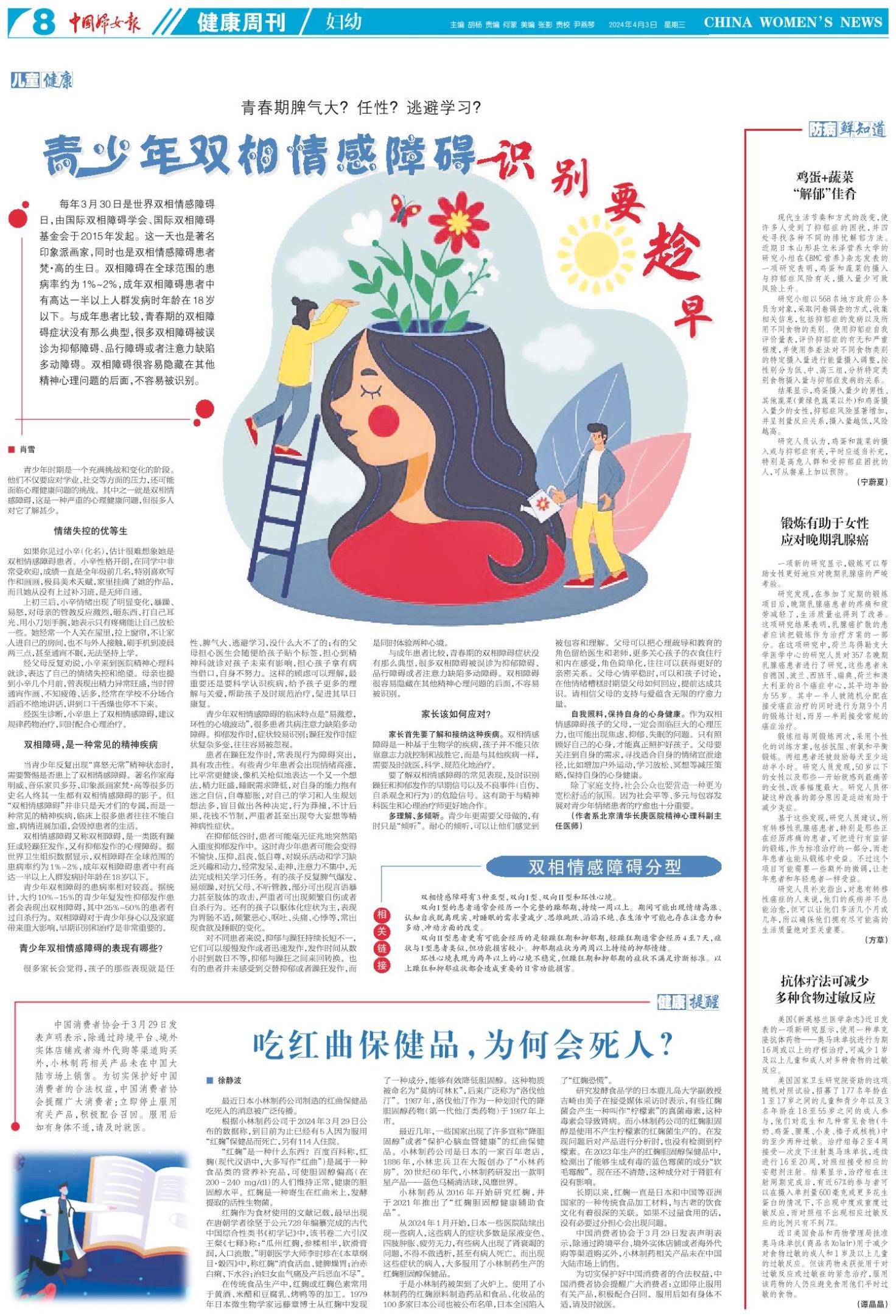 《中国妇女报》(电子版)的一切内容(包括但不限于文字、图片、PDF、图表、标志、标识、商标、版面设计、专栏目录与名称、内容分类标准以及为读者提供的任何信息)仅供中国妇女报读者阅读、学习研究使用,未经中国妇女报及/或相关权利人书面授权,任何单位及个人不得将《中国妇女报》(电子版)所登载、发布的内容用于商业性目的,包括但不限于转载、复制、发行、制作光盘、数据库、触摸展示等行为方式,或将之在非本站所属的服务器上作镜像。否则,中国妇女报将采取包括但不限于网上公示、向有关部门举报、诉讼等一切合法手段,追究侵权者的法律责任。