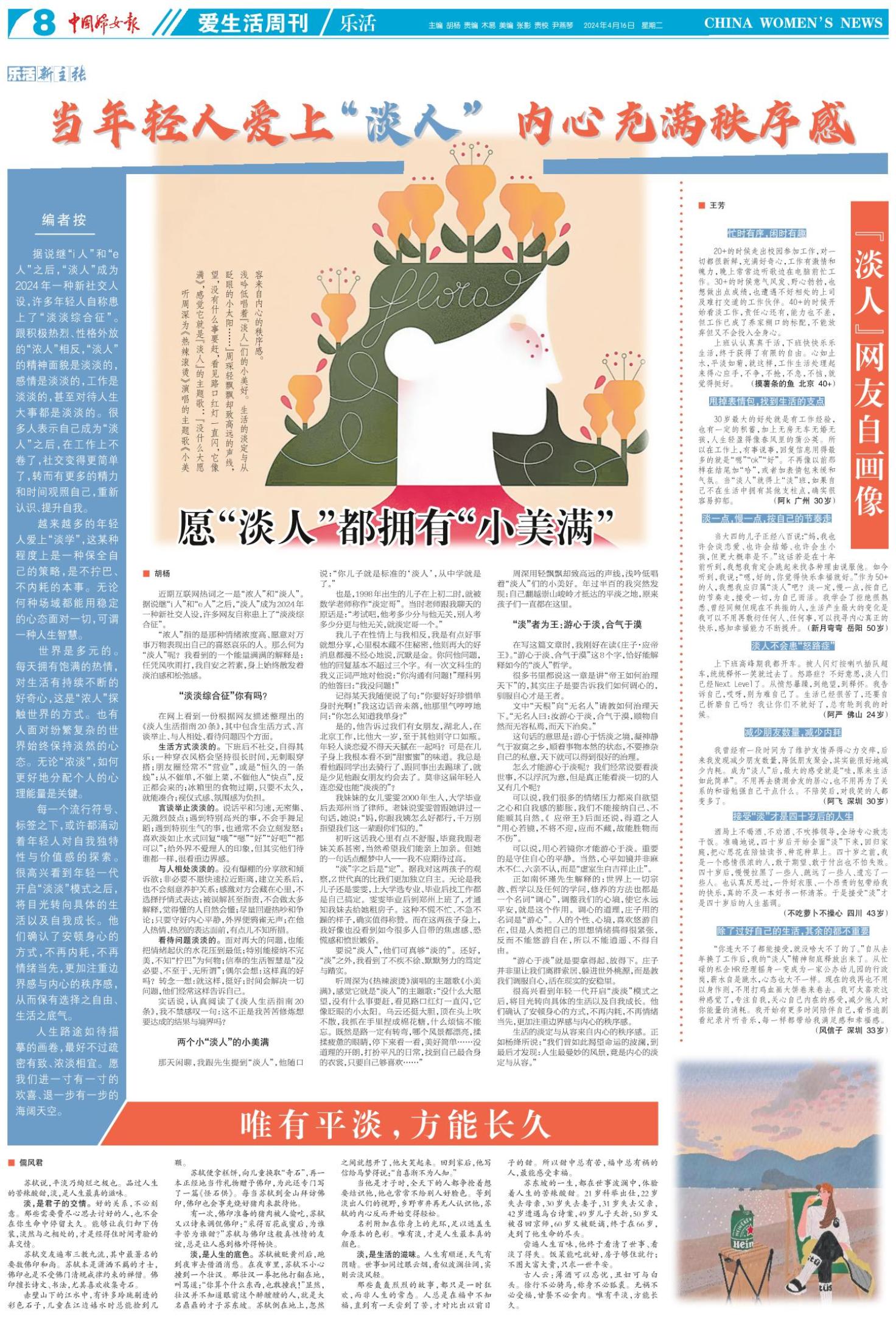 《中国妇女报》(电子版)的一切内容(包括但不限于文字、图片、PDF、图表、标志、标识、商标、版面设计、专栏目录与名称、内容分类标准以及为读者提供的任何信息)仅供中国妇女报读者阅读、学习研究使用,未经中国妇女报及/或相关权利人书面授权,任何单位及个人不得将《中国妇女报》(电子版)所登载、发布的内容用于商业性目的,包括但不限于转载、复制、发行、制作光盘、数据库、触摸展示等行为方式,或将之在非本站所属的服务器上作镜像。否则,中国妇女报将采取包括但不限于网上公示、向有关部门举报、诉讼等一切合法手段,追究侵权者的法律责任。
