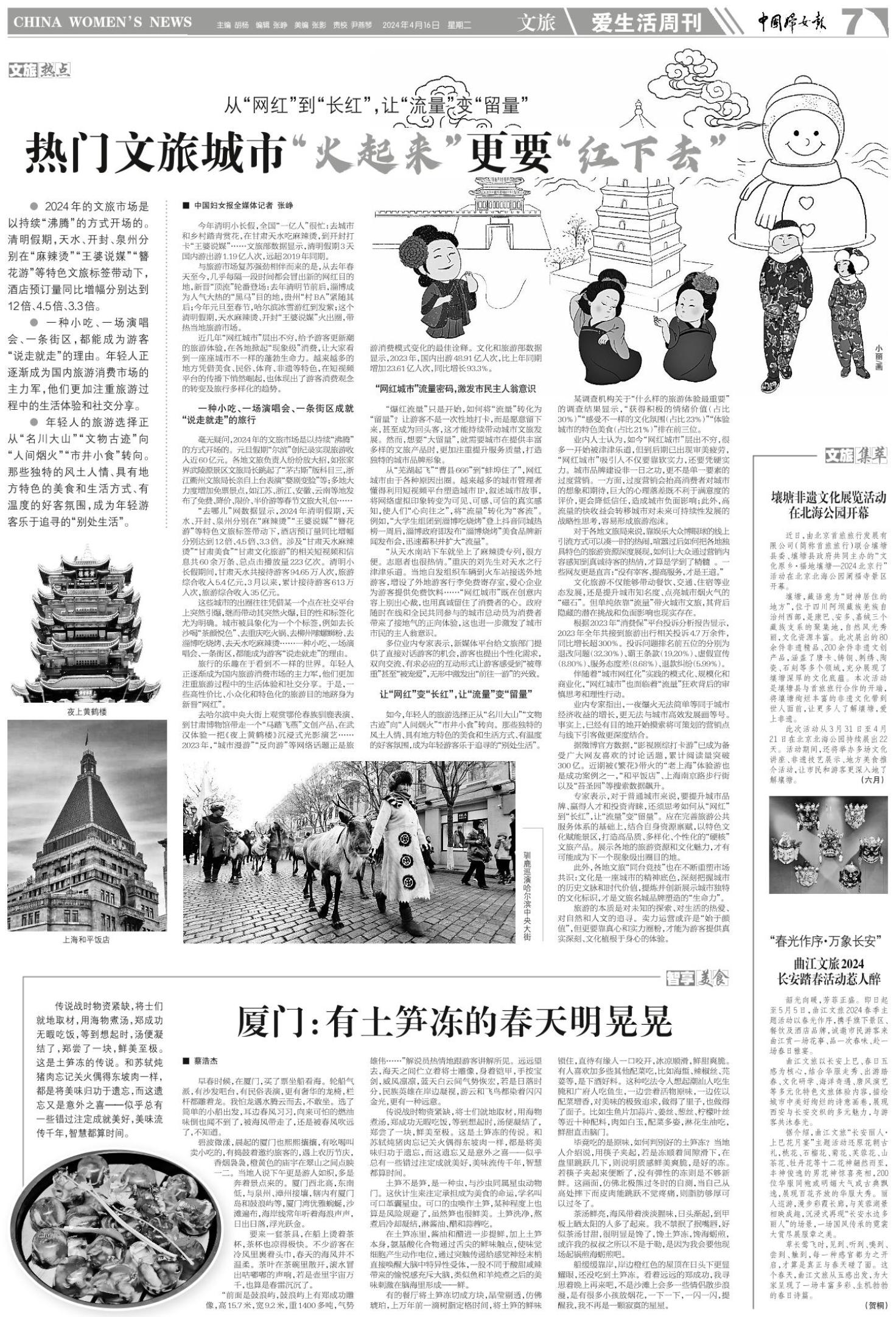 专家表示,对于普通城市来说,要提升城市品牌、赢得人才和投资青睐,还须思考如何从“网红”到“长红”,让“流量”变“留量”。应在完善旅游公共服务体系的基础上,结合自身资源禀赋,以特色文化赋能景区,打造高品质、多样化、个性化的“硬核”文旅产品。展示各地的旅游资源和文化魅力,才有可能成为下一个现象级出圈目的地。