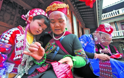 “棹女饰银钩,新妆下翠楼。”我国自古就有使用银质饰品的传统,在贵州黔东南,造型精美款式多样的银饰是苗族女性盛装时重要的装饰。 由贵州省黔东南苗族侗族自治州黄平县申报的苗族银饰制作技艺已被列入国家级非物质文化遗产代表性项目名录,目前该县共有非遗传承人42名,银质饰品年销量达10余吨,年销售收入650万元。 当地银匠依旧保持着手工制作的传统,经过熔银、锻打、拉丝、烧制、雕花、打磨、抛光等工序,制作出款式丰富、造型精美的银饰,人们在逢年过节或迎亲嫁娶等大型活动时都会穿戴在身上,盛装出门,成为一道又一道亮丽的风景。 (新华社发)